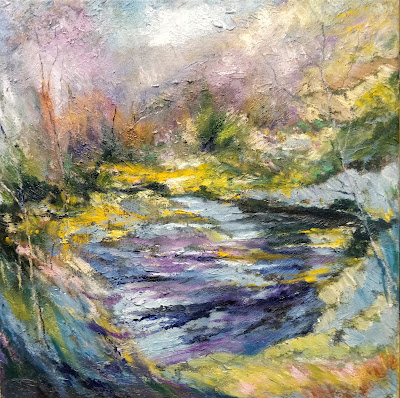 I have tried to use bold brush marks with lots of vivid colour to enhance the sense of place. Based on sketches made whilst walking across Bodmin Moor.